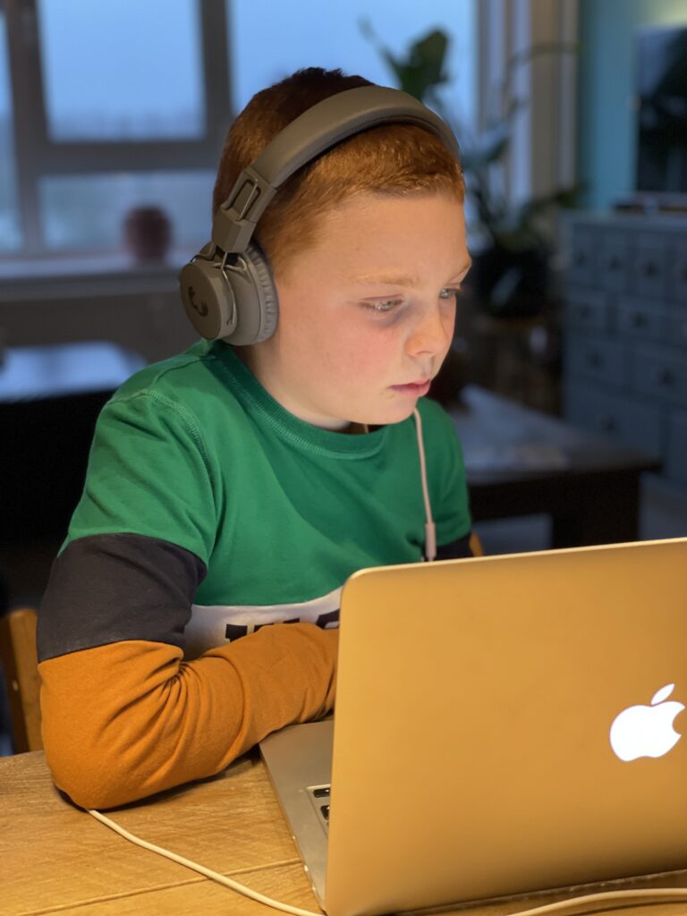 Mijn bink komt hoestend en proestend van de ontbijttafel af. Aangezien er al aardig wat kinderen in zijn klas positief zijn getest, doe ik ook maar even een zelftest bij hem. Helaas is deze positief en dus kan hij mooi bij mij aan tafel schuiven voor wat thuisonderwijs.