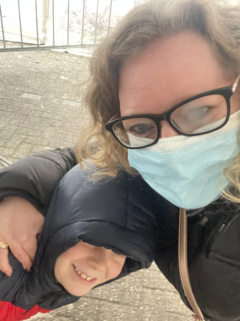 Mijn tuttebel voelt zich niet zo lekker en heeft hoofdpijn. Aangezien mijn bink al positief is en ik ook een positieve zelftest heb, houden we haar maar thuis en gaat ze niet voetballen. We maken er een heerlijke hangochtend van tot ik mag gaan testen.