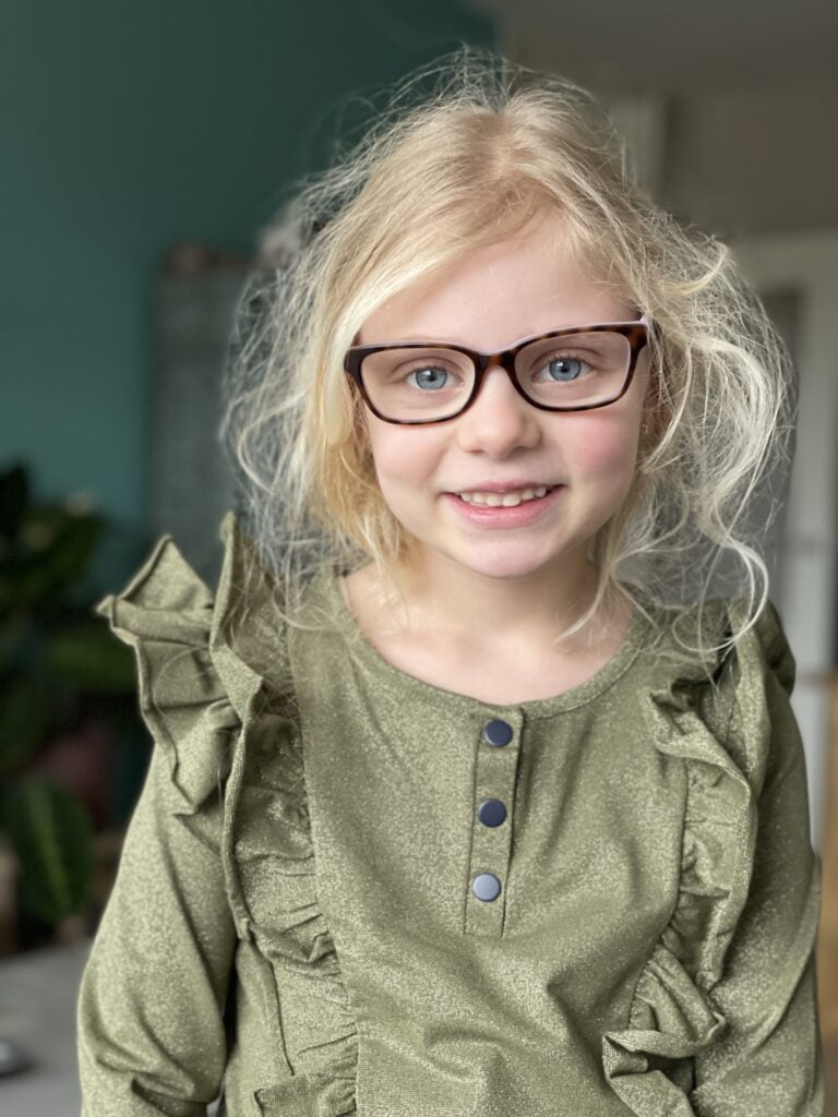 Mijn tuttebel heeft al twee dagen haar andere bril op en ik ben blij dat ze hem eindelijk op laat staan, want ik vind deze zo leuk staan bij haar. Ik ben benieuwd hoe snel ze de bril weer omwisselt.