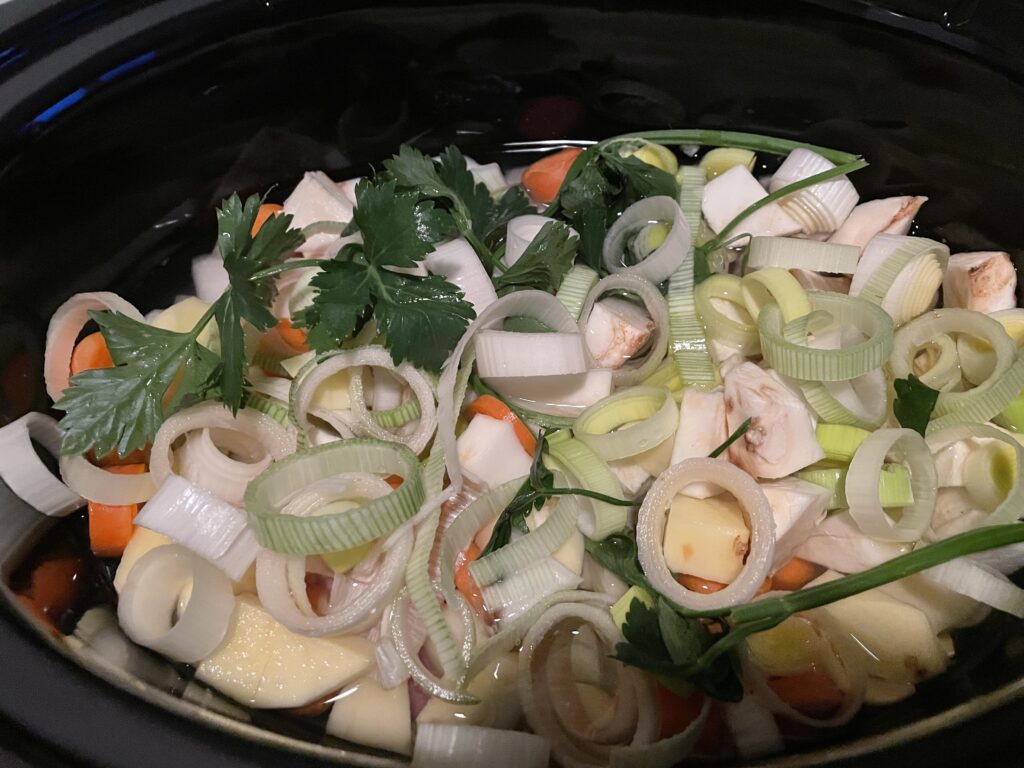 De boodschappen zijn weer lekker op tijd bezorgd en zo kan ik nog voordat ik naar de voetbal ga al de slowcooker met ingrediënten voor de erwtensoep aan zetten.