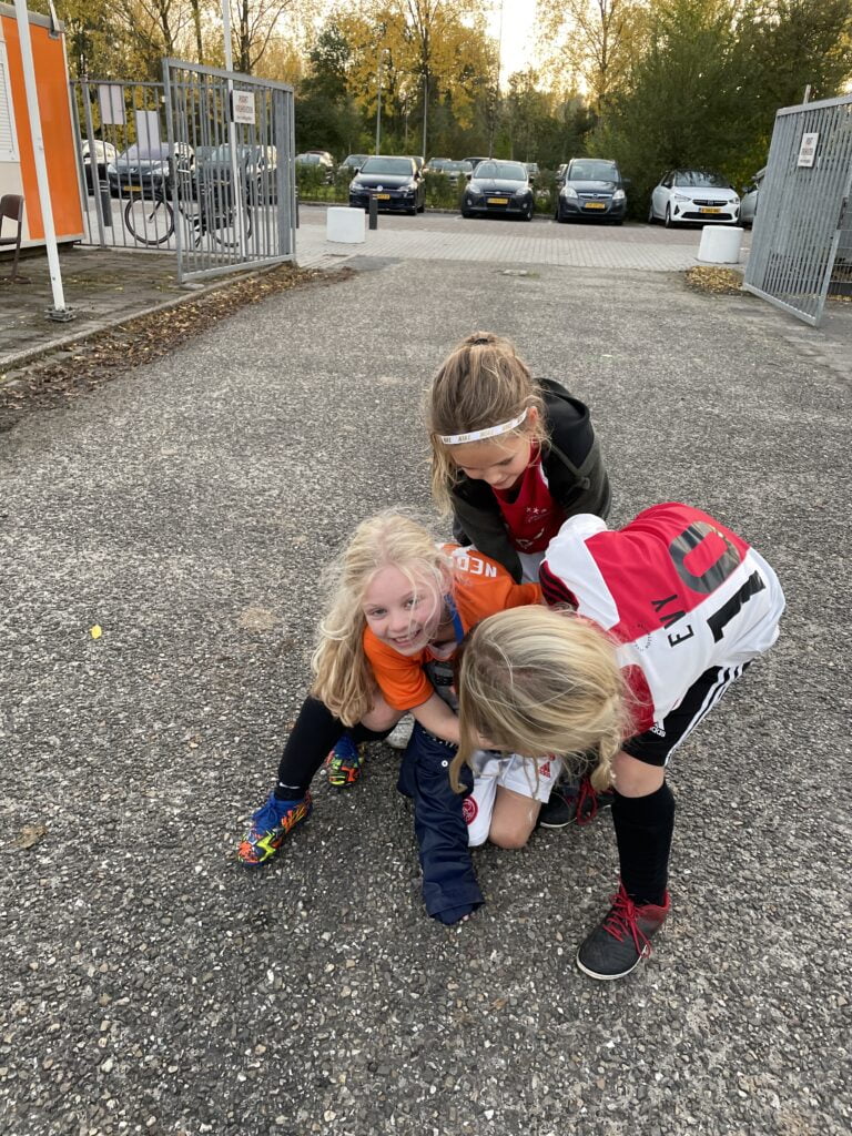 Mijn tuttebel heeft het weer super naar haar zin met haar voetbalmaatjes. Helemaal als de mama’s te lang blijven hangen voor de poort van het voetbalveld.