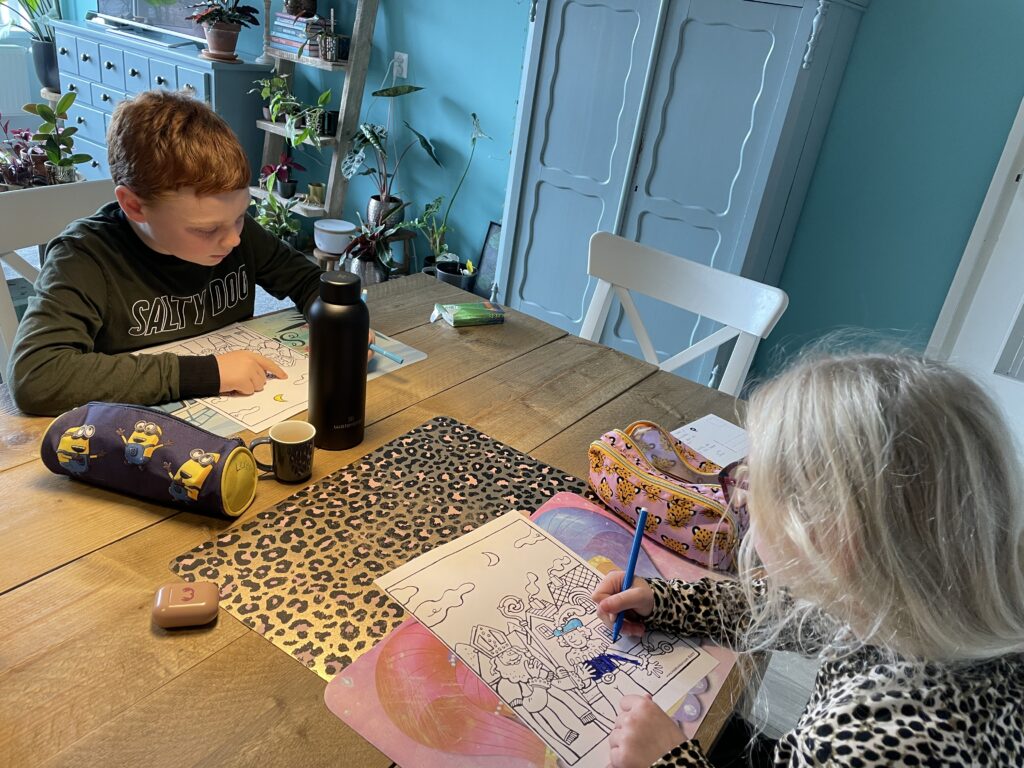 Ik print voor de kinderen twee Sinterklaas kleurplaten uit en ze gaan heerlijk een poosje naast me zitten kleuren. Stiekem vind ik het best gezellig zo.