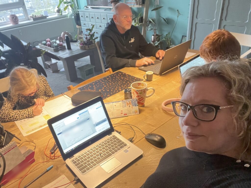 Op mijn vrije dag bekijk ik het thuiswerktafereel vanaf een afstand. Het is heerlijk om dat even te kunnen doen op deze manier.