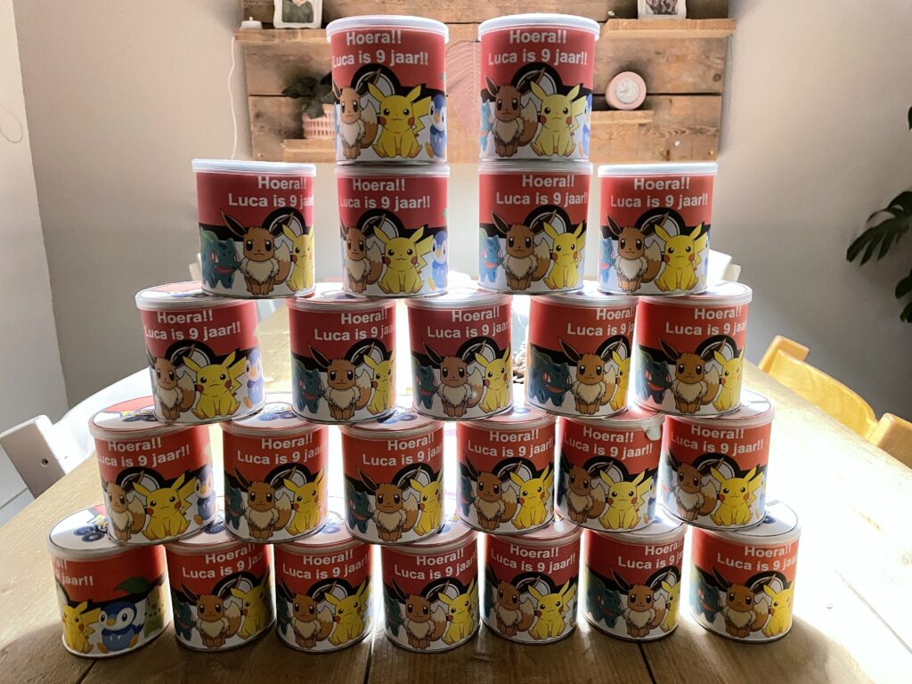 Samen met de man maak ik de traktaties voor mijn bink. Hij trakteert dit keer een klein blikje Pringles met een wikkel en topper van Pokémon. De printable die ik gebruikte is van Annekoendigitaal.