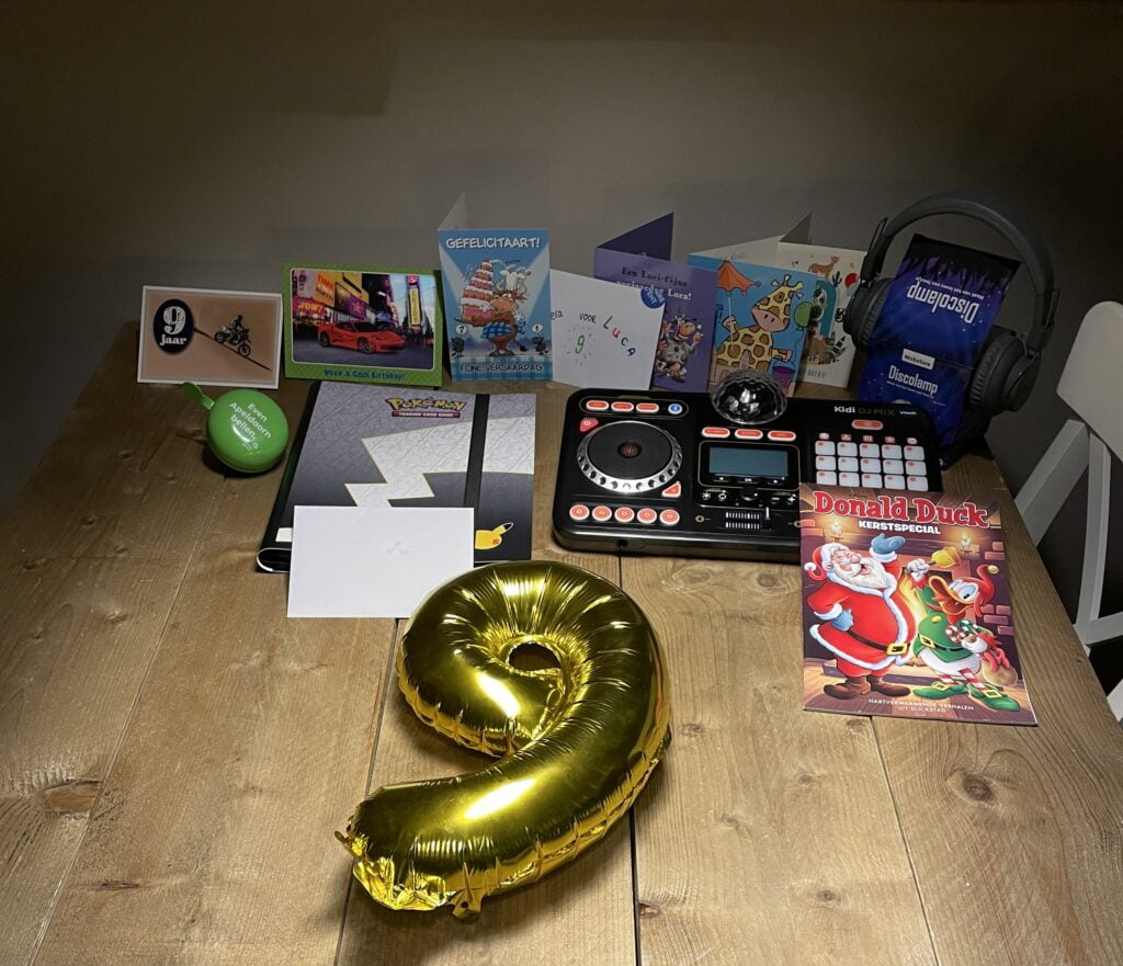 Mijn bink heeft ook zijn cadeautjes van Opa en Oma Vrachtwagen en zijn oom gekregen. Hij is helemaal door het dolle heen en superblij met zijn Pokémon verzamelmap en plaatjes.
