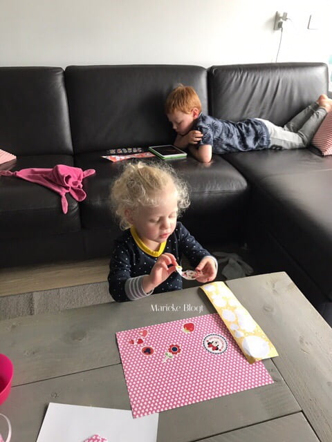 Aangezien Erik niet fit is, hij voelt zich lamlendig en is heel erg moe, gaan we niet naar de verjaardag van de zoon van vrienden. We vinden het erg jammer, maar het is niet anders. Erik duikt lekker zijn bed in, terwijl Luca lekker ligt te chillen en Giulia, na een veel te kort slaapje, stickers plakt.