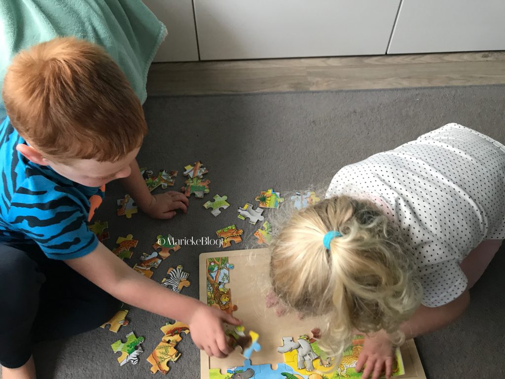 Er wordt gespeeld en gepuzzeld door de kinderen.