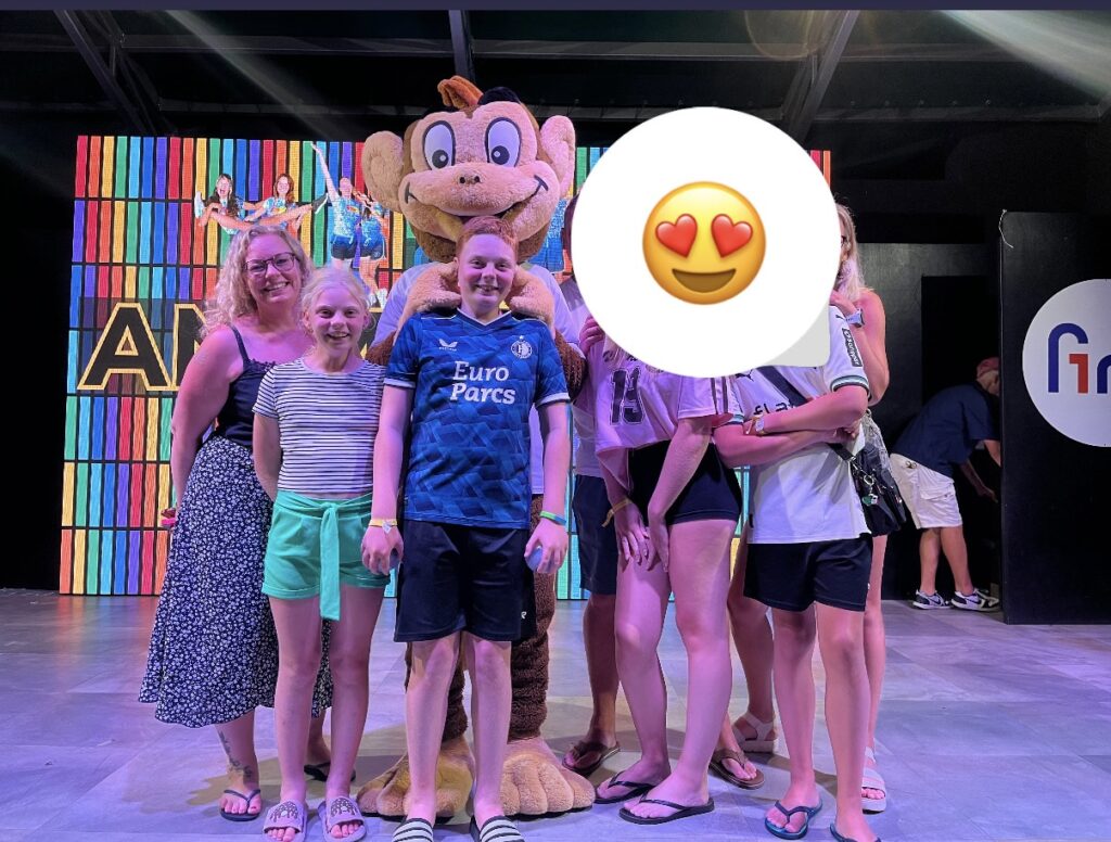 Daarna sluiten de andere buren zich bij ons aan, want er is een loterij georganiseerd door het animatieteam en we hebben lootjes gekocht. Uiteraard winnen we niks, maar we hebben wel een hele leuke en gezellige avond gehad. Die we afsluiten door met zijn allen met Spaghetto op de foto te gaan.