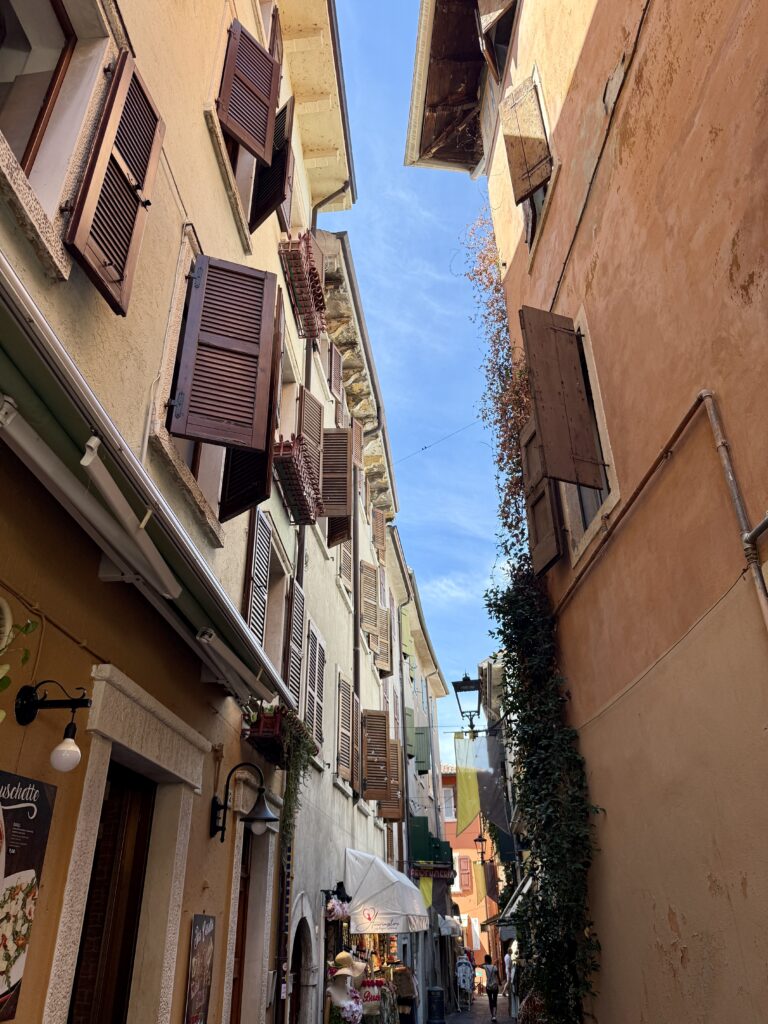 Van Lazise rijden we door naar Garda. We hebben daar van de week iets gezien voor mijn tiener, maar toen was het uitverkocht en het zou gisteren of vandaag binnenkomen. Helaas is het er nog niet, maar de mevrouw van de winkel legt het apart zodra het binnenkomt en we kunnen morgen even een appje naar haar sturen om te checken of het er is, omdat we anders weer voor niks rijden.