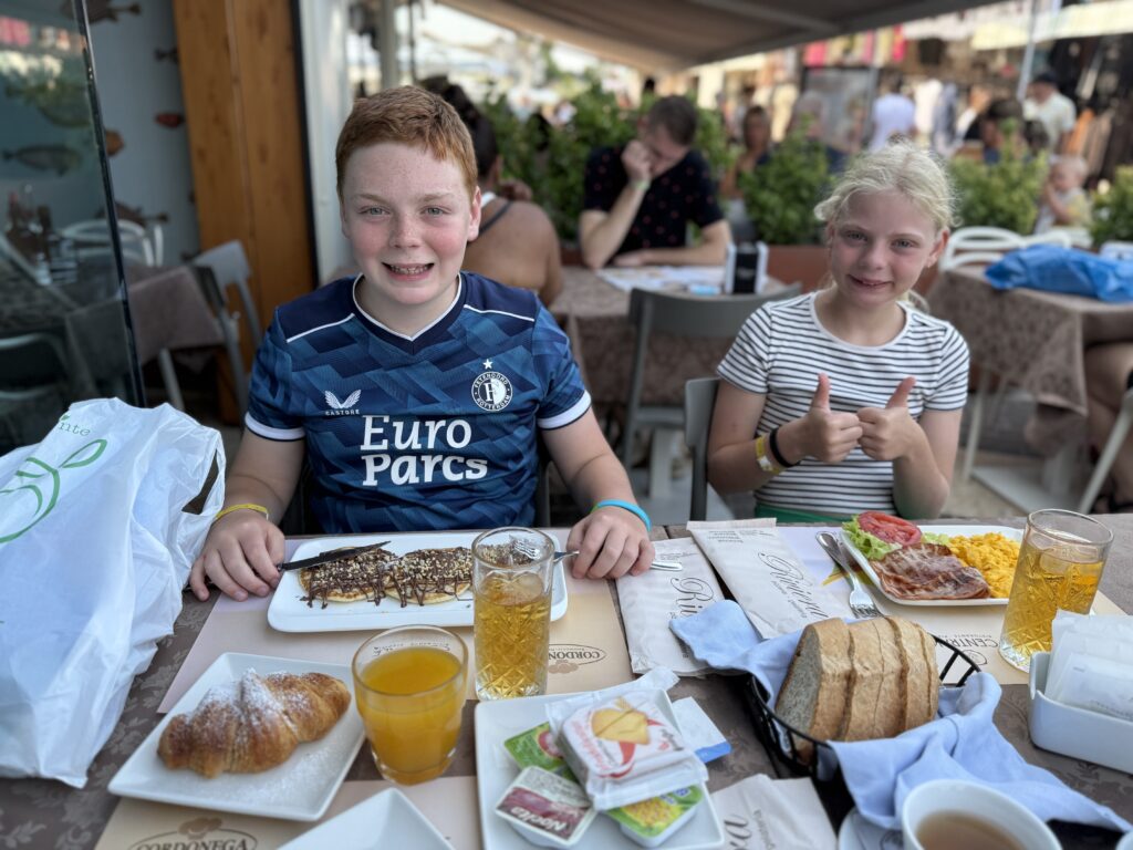 De dag beginnen we met een gezellig ontbijt met verse broodjes die mijn vader en mijn puber samen zijn gaan halen in het dorp.