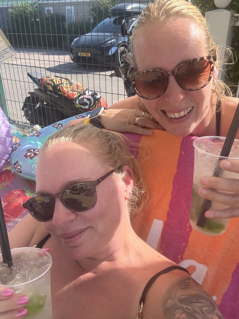 We maken alvast een begin met opruimen en inpakken van tassen, maar in de loop van de ochtend gaan we richting het zwembad, waar we tot een uur of 17.00 blijven. We liggen er met ons halve laantje (lees overburen en mijn directe buren) en dat is erg gezellig. In de loop van de middag voegen mijn bestie en haar gezin zich ook nog bij ons, want zij zijn speciaal voor de verjaardag van Erik een dag eerder naar de camping gekomen. Wat wel echt superlief is.