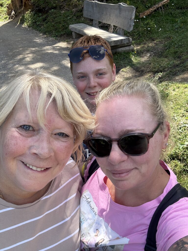 Na het eten zoekt mijn puber nog even bij één van de waterspeelplekken naar goud en daarna gaan mijn vader en mijn tiener met de kabelbaan weer naar beneden. Mijn moeder, mijn puber en ik wandelen van de Komperdellbahn via de Holzkugelweg naar beneden toe. Hoewel het een vrij makkelijke afdaling is, maakt de 28 graden en weinig schaduw onderweg, het best pittig, maar het is het absoluut waard.