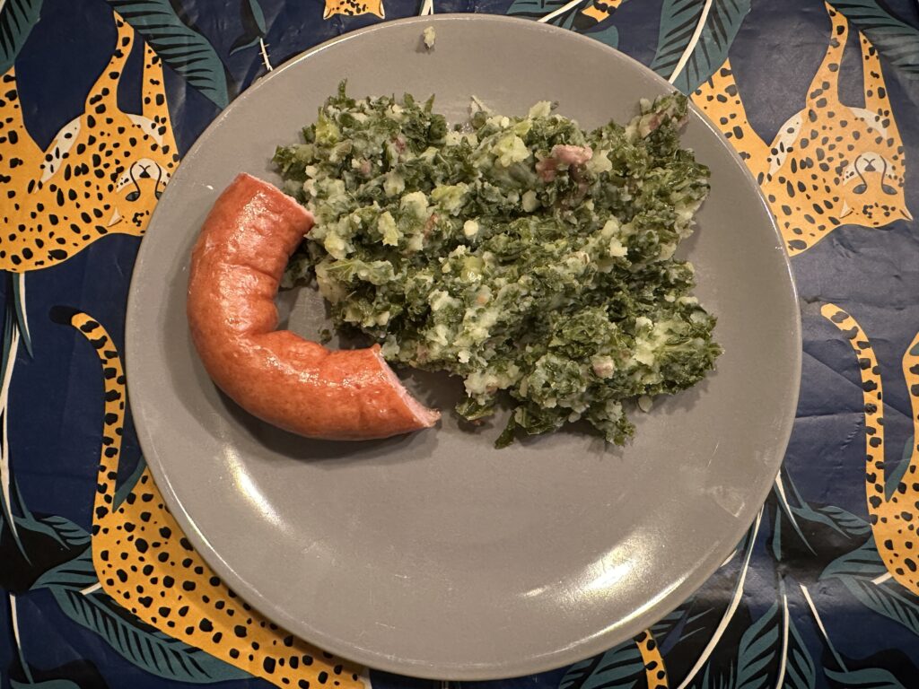Voor het avondeten maak ik lekker boerenkool stamppot. Deze winter eten we weinig stamppotten, wat ik wel echt heel erg jammer vind, want het is altijd zo’n welkome afwisseling in groenten.