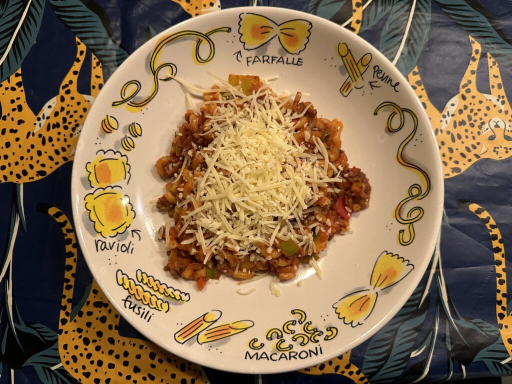 Mijn bink is nog niet helemaal fit en daarom zeg ik de voetbaltraining af. Aangezien we gewoon normaal moeten eten, duik ik wel de keuken in en maak ik macaroni.
