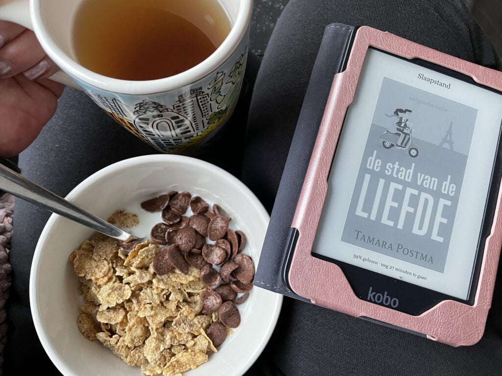 Ik ben vandaag weer te vinden in mijn favoriete hoekje en ben begonnen aan het nieuwste boek van Tamara Postma.