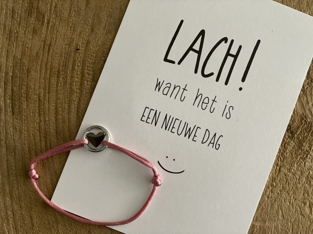 Van mijn vriendin krijg ik een armbandje en een kaartje, superlief!