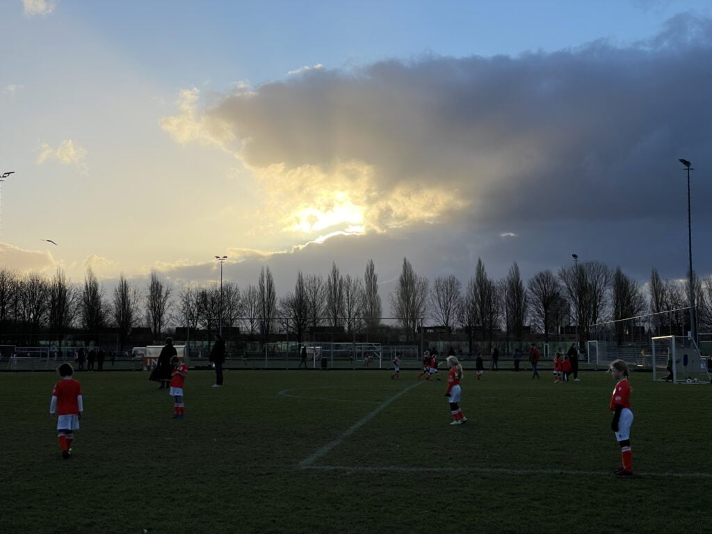 Er mag weer gevoetbald worden. Ik ga met mijn tuttebel mee, zodat ik meteen een poosje frisse lucht kan happen. En fris is het kan ik je vertellen. Hoewel er best lekker gevoetbald wordt, verliezen ze de wedstrijd.