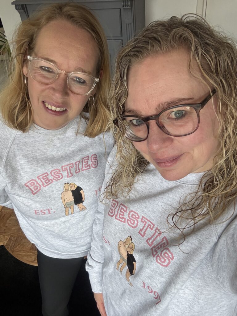 Van mijn vriendin krijg ik een leuke sweater voor Valentijnsdag, want dit jaar zijn we 29 jaar vriendinnen.