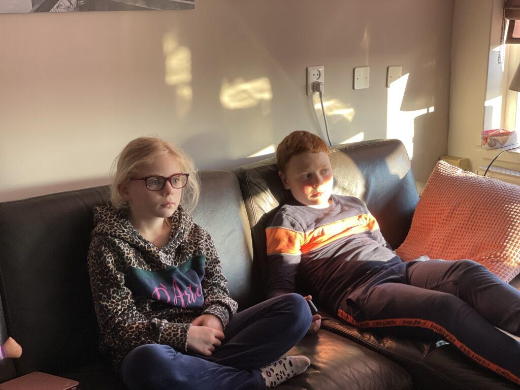 Na de lunch gaan ze zelfs naar buiten toe om voor het eerst samen te skaten. Wij genieten ondertussen van de stilte in huis en kijken allebei een serie.