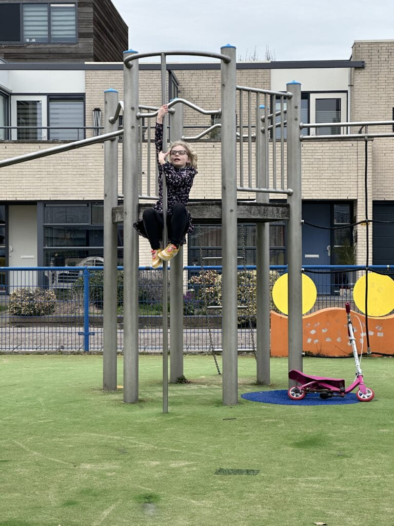 Mijn tuttebel is in de speeltuin aan het spelen met haar vriendin, die in de buurt woont van mijn vriendin.