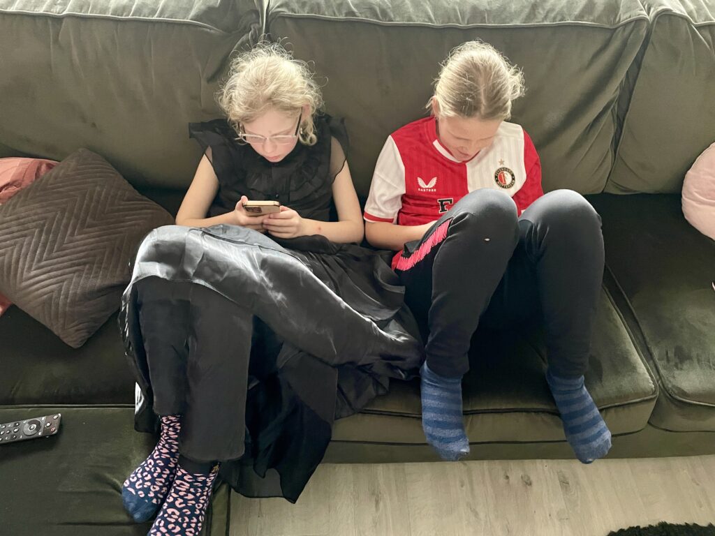 De meiden hebben elkaar al een tijdje niet gezien, maar er wordt eerst gespeeld met de puber en met de jongste van mijn vriendin, voordat ze samen gaan chillen op de bank. Gelukkig hebben mijn vriendin en ik wel genoeg de tijd om te kunnen bijkletsen samen.