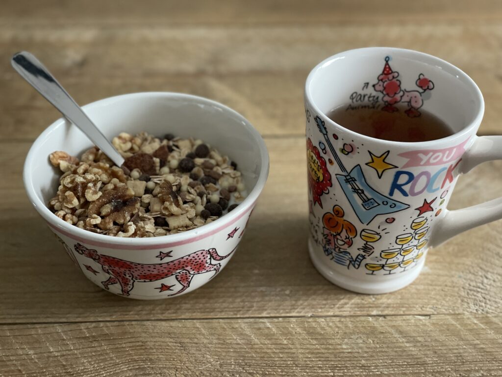 Voordat we naar de voetbal mogen, ontbijt ik nog even snel met de Mymuesli van Demammavan. En die is wel echt heel erg lekker. Dat vinden de kinderen ook trouwens, want ze pikken van alles uit mijn bakje.