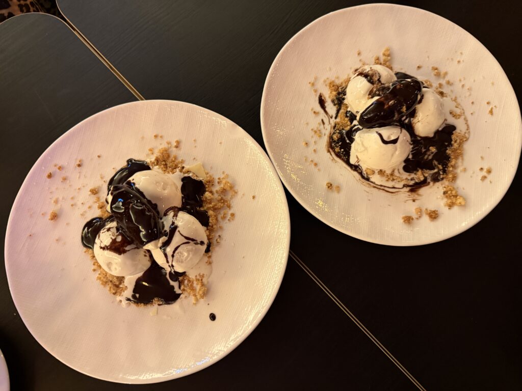 De kinderen nemen beide nog een dame blanche en hoewel een dessert echt wel roept, zit ik vol en neem een bakkie thee na.
