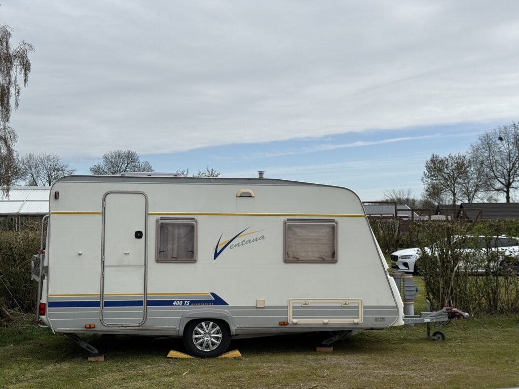 Met mijn vader ga ik de caravan halen bij het onderhoudsbedrijf en daarna naar de camping brengen, want morgen gaan we opbouwen voor het campingseizoen.