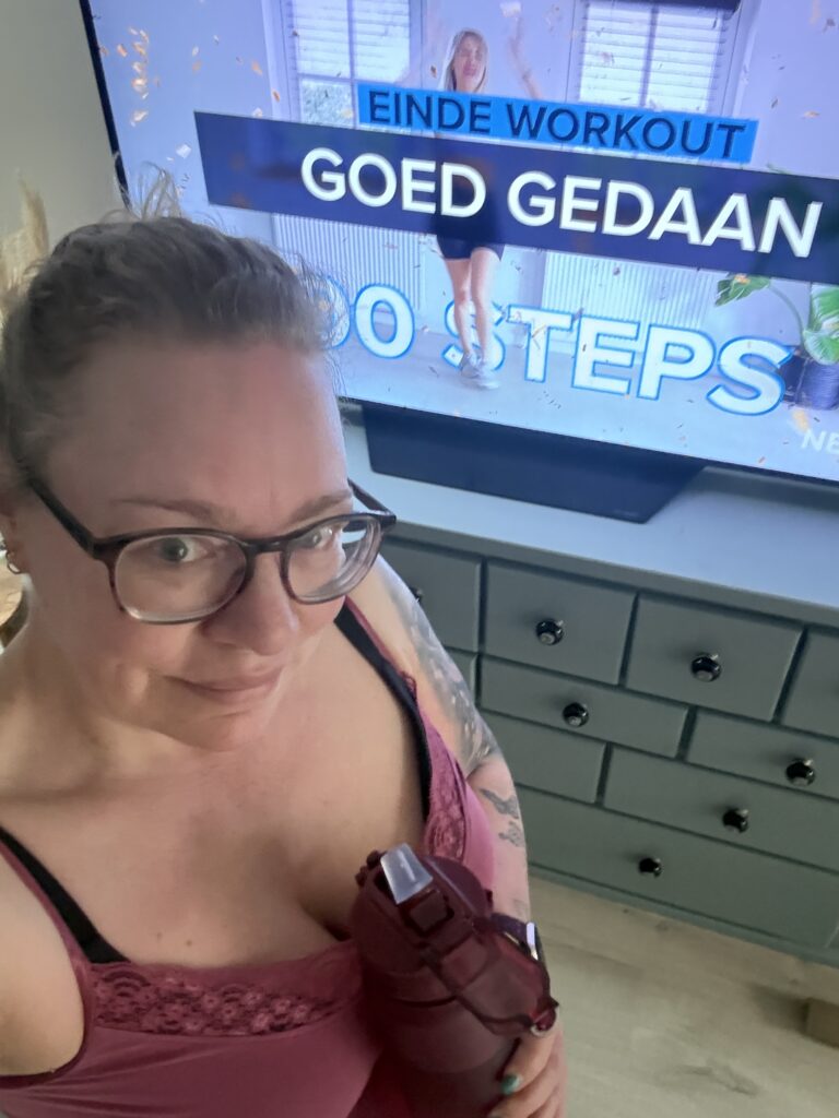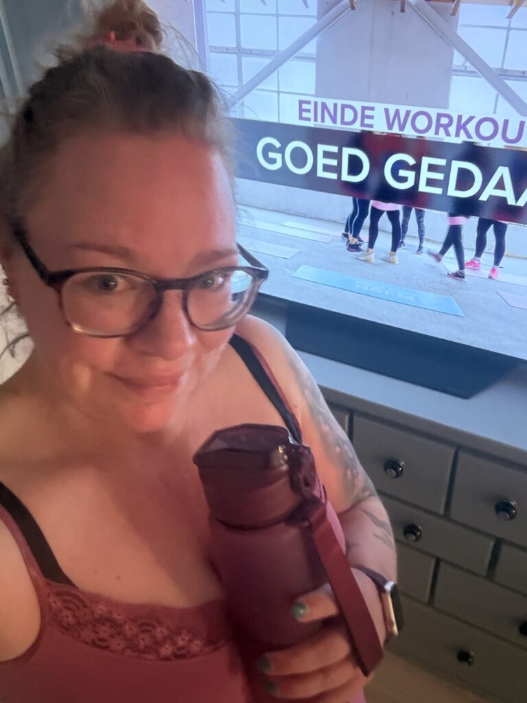 We beginnen de ochtend met een workout, want dat is wel echt nodig, aangezien ik de hele week nog geen workout heb gedaan.