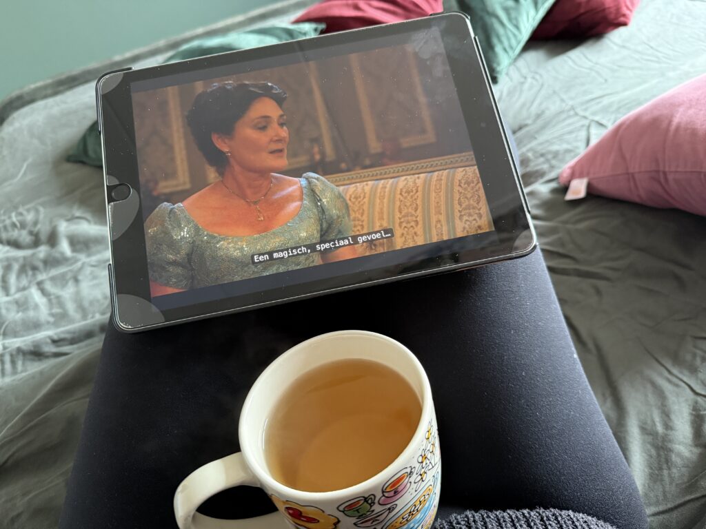 Boven is inmiddels alles al gepoetst en dus is het tijd om even te chillen met een aflevering Bridgerton.