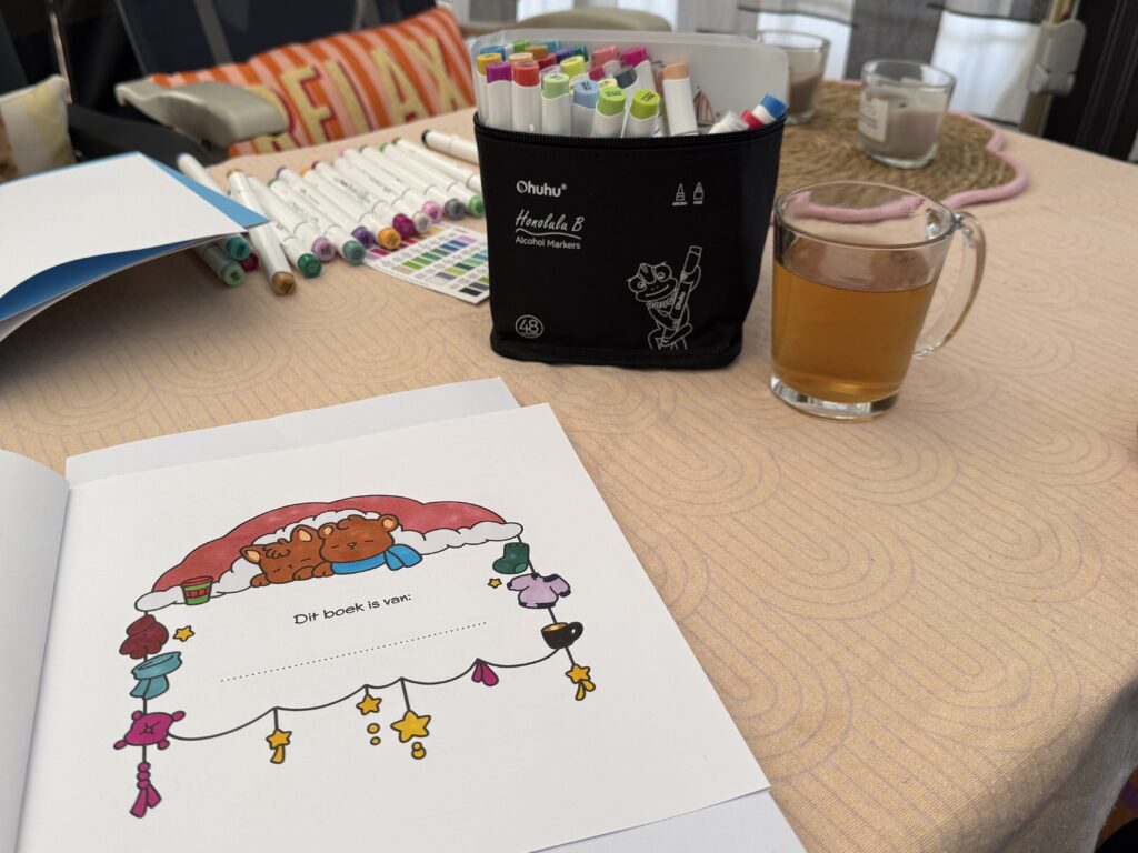Mede door mijn campingvriendinnen heb ik het kleuren helemaal herontdekt. En hoe kun je beter wakker worden dan met even lekker kleuren.