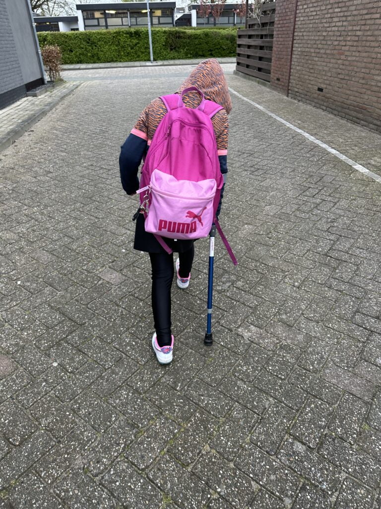 Het is weer tijd voor een schoolrun, alhoewel dat vrij lastig gaat als je met een kruk loopt. Mijn bink is uiteraard alweer naar school toe.
