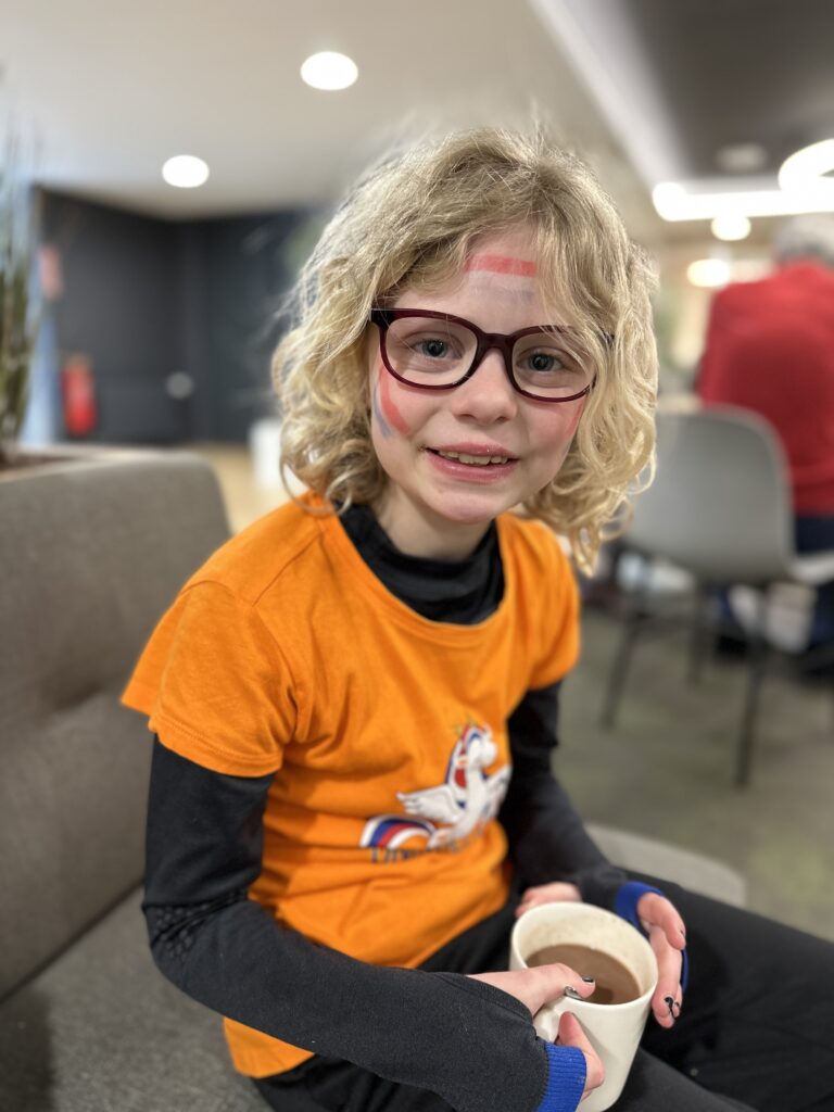 Het is de laatste dag voor de meivakantie en dat betekent dat de koningsspelen vandaag zijn. Ze zijn er allebei helemaal klaar voor, al kan mijn tuttebel door haar enkel niet mee doen. Wel sneu, want juist door het oefenen van de ZiggZagg heeft ze nu dat zwaargekneusde kuitbeenkopje.