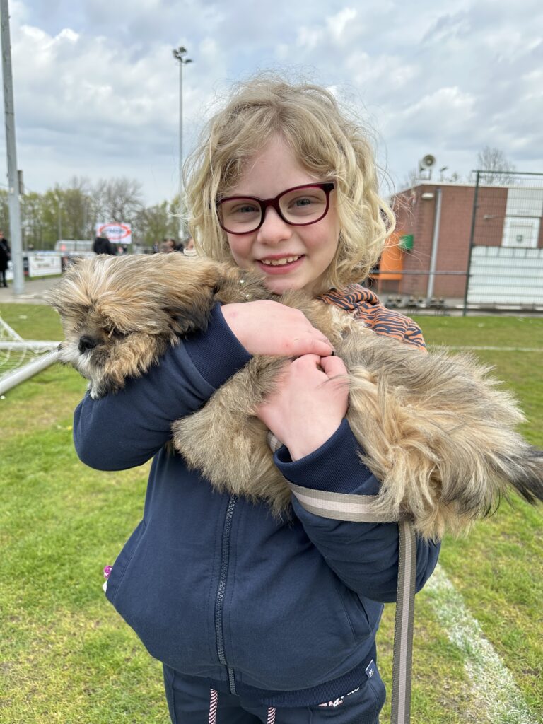 We gaan bij de voetbalwedstrijd van mijn bink kijken en daar is ook weer een hondenvriendje, waar uiteraard mee geknuffeld moet worden.