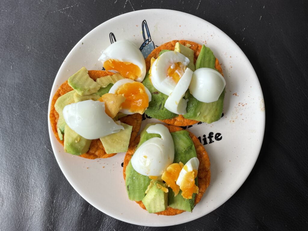 Nu ik nog een paar weekjes thuiswerk, geniet ik volop van de lunches die ik kan maken. Vandaag heb ik drie maiswafels paprika met avocado en ei.