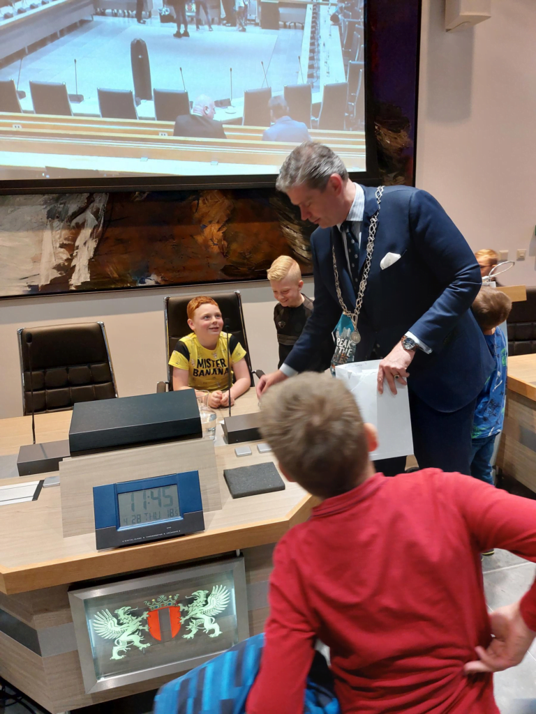 De kinderen zijn vandaag bij de burgemeester op visite geweest op het stadhuis en dat was wel echt heel erg leuk. Helemaal omdat mijn bink ook nog op de stoel van de burgemeester mocht zitten.