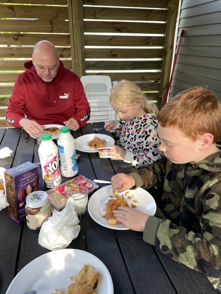 Op verzoek van de kinderen blijven we vandaag de hele dag op de camping! We beginnen met een ontbijtje! De broodjes worden door de kinderen gehaald en dat is al een avontuur op zich!