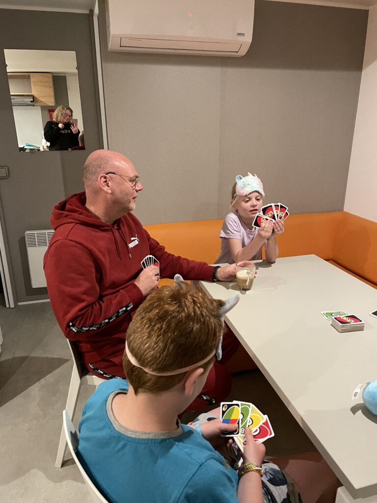 Terug bij de caravan spelen we nog twee potjes UNO met de kinderen en als ze op bed liggen sluiten we af met een spelletje Skipbo! Al met al een prima geslaagde campingdag!