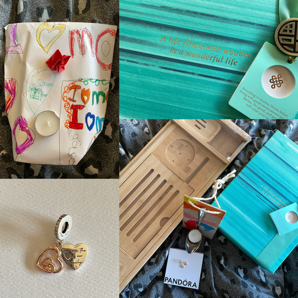 Hoewel het nog geen moederdag is, krijg ik wel alvast mijn cadeautjes, omdat ze anders mee moeten op vakantie en dat alleen maar extra bagage is. Ik word enorm verwend met een theelichthouder in zelfgemaakt inpakpapier van mijn tuttebel, een Rituals pakket van mijn bink, omdat ze vanaf groep 5 niks meer maken voor moederdag (vind ik stom, want het is alleen maar leuk om zoiets te doen voor ouders), voor in het nieuwe huis krijg ik een badplank en ook nog een bedel van Pandora van de kinderen.