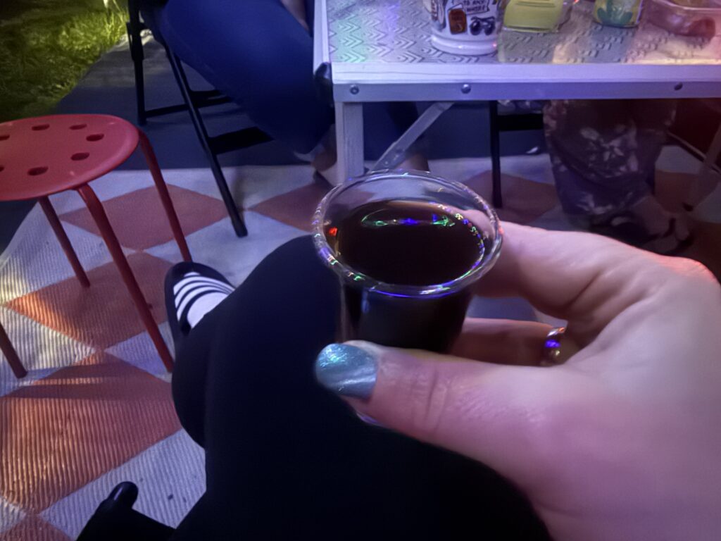 Daarna drink ik een bakkie thee bij de overburen en uiteraard hoort daar ook een shotje bij.