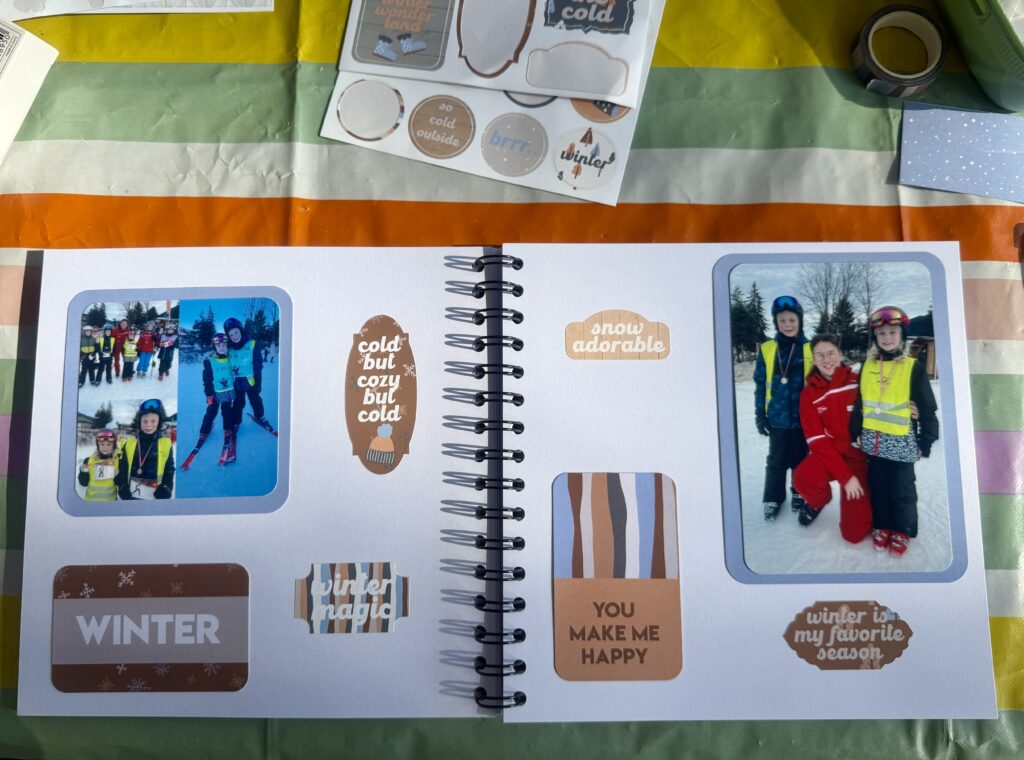 Ik plak ondertussen de laatste twee foto’s in het wintersportboek. Ik ben best trots op mezelf, want dit is het tweede boek al wat af is. Op naar het volgende boek.