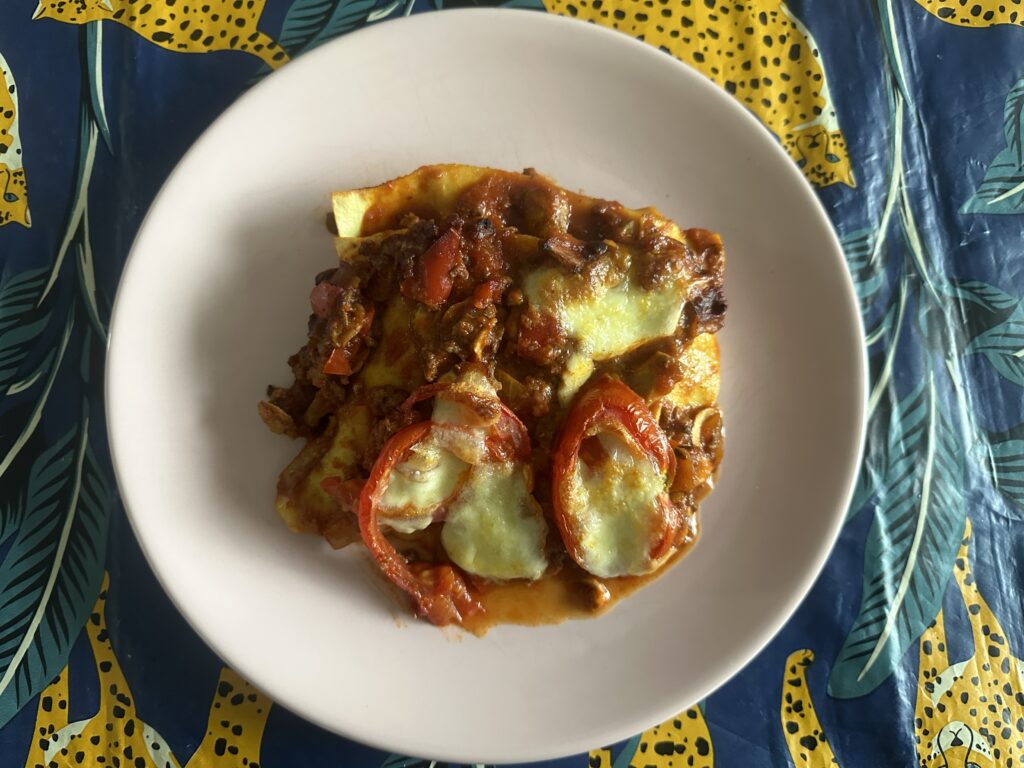 Vandaag eten we lasagne. De saus heeft de hele dag in de slowcooker geprutteld, waardoor het nog lekkerder wordt. En de lasagne is stevig genoeg om mijn stukje in zijn geheel op mijn bord te schuiven. Dat is wel een life goal hoor.