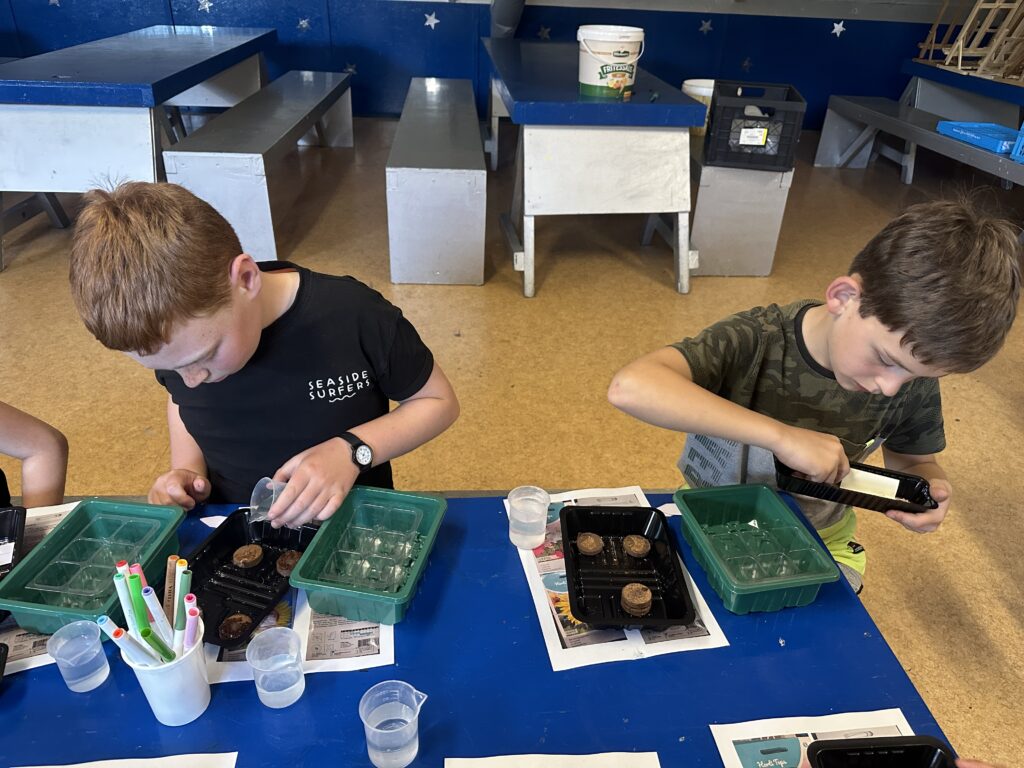 Na het pony rijden gaat mijn bink samen met zijn vriendje gezellig naar de knutselzolder toe, waar ze dit keer aan een moestuintje werken. Normaal mag je niet op de zolder komen als ouder, maar ik moest even iets afgeven, waardoor ik naar boven toe mocht en zo ook een foto heb kunnen maken van de jongens.