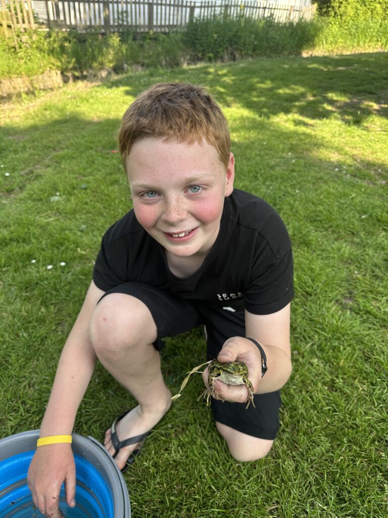 De camping waar wij op staan is omringd door water waar je niet alleen kunt vissen, maar ook kikkers kunt vangen. Mijn eigen Freek Vonk vindt dat natuurlijk helemaal geweldig, terwijl ik er niks van moet hebben.
