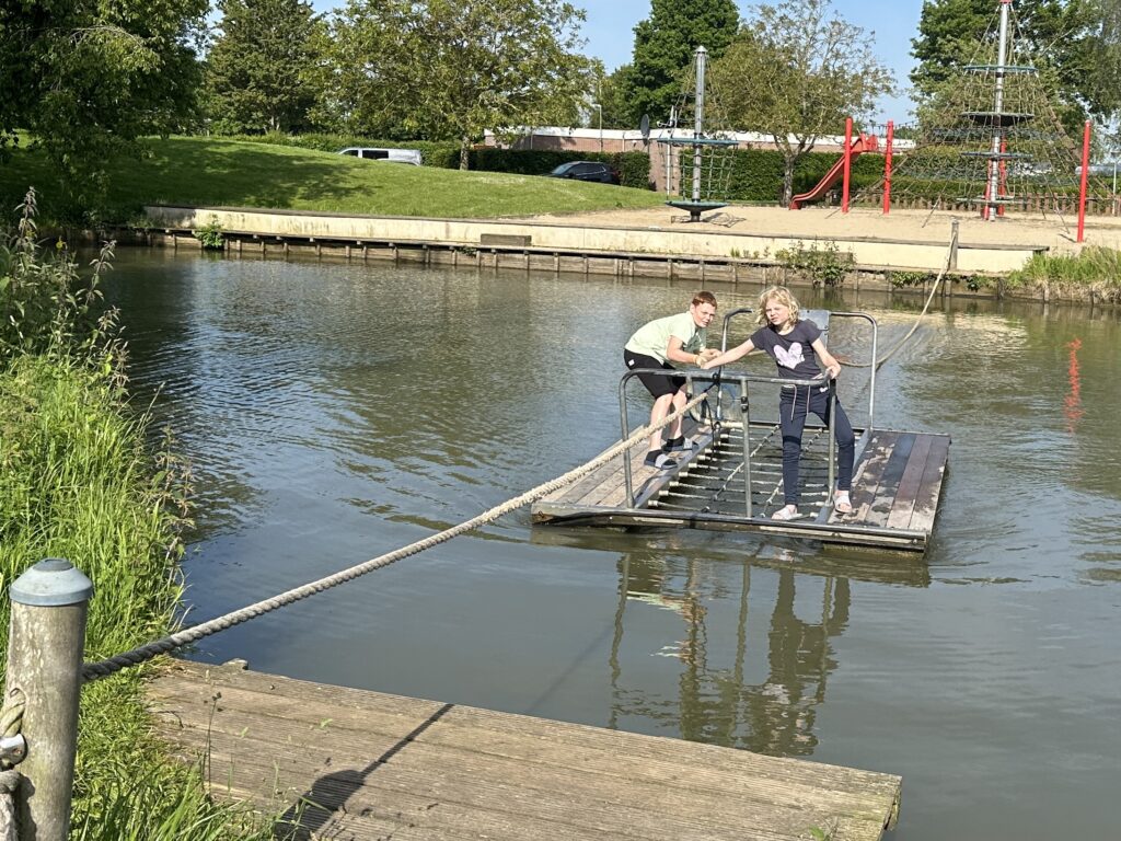 De kinderen hebben dit weekend nog nauwelijks de kans gekregen om op het vlot te staan, maar vandaag zijn ze op tijd en lukt het wel.