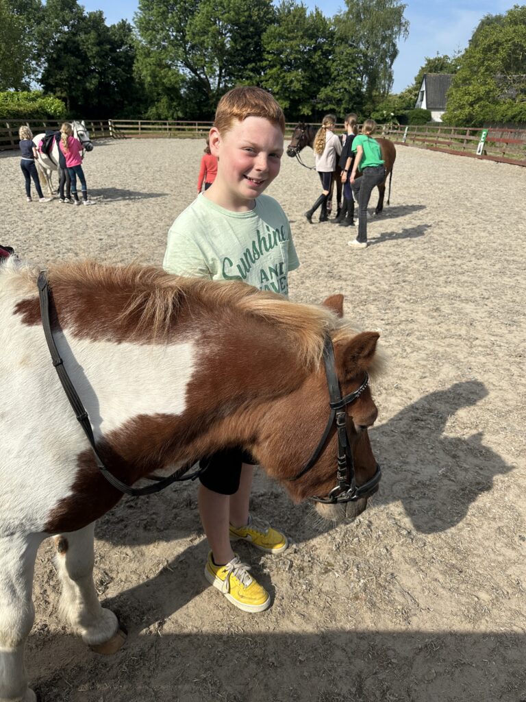 Vandaag ben ik niet één maar twee kinderen kwijt bij de pony’s. Ook mijn bink heeft bedacht dat hij wel mee wil helpen.