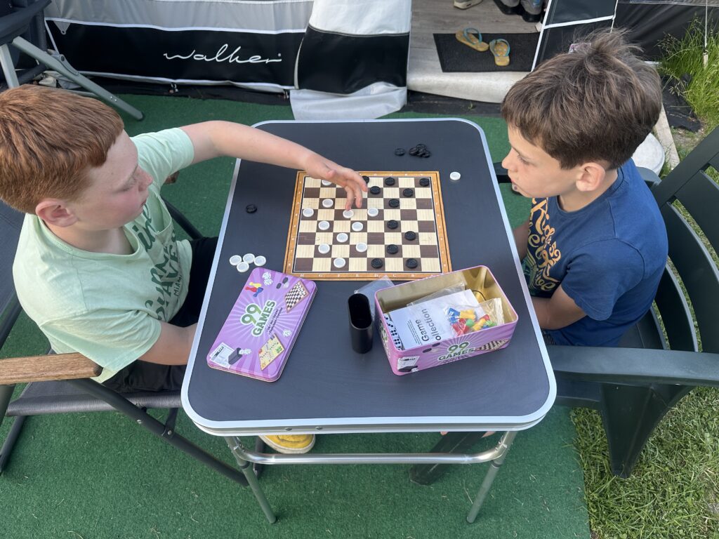 Zo spelen we een potje Ezelen en gaan de kinderen ook nog een potje dammen samen.