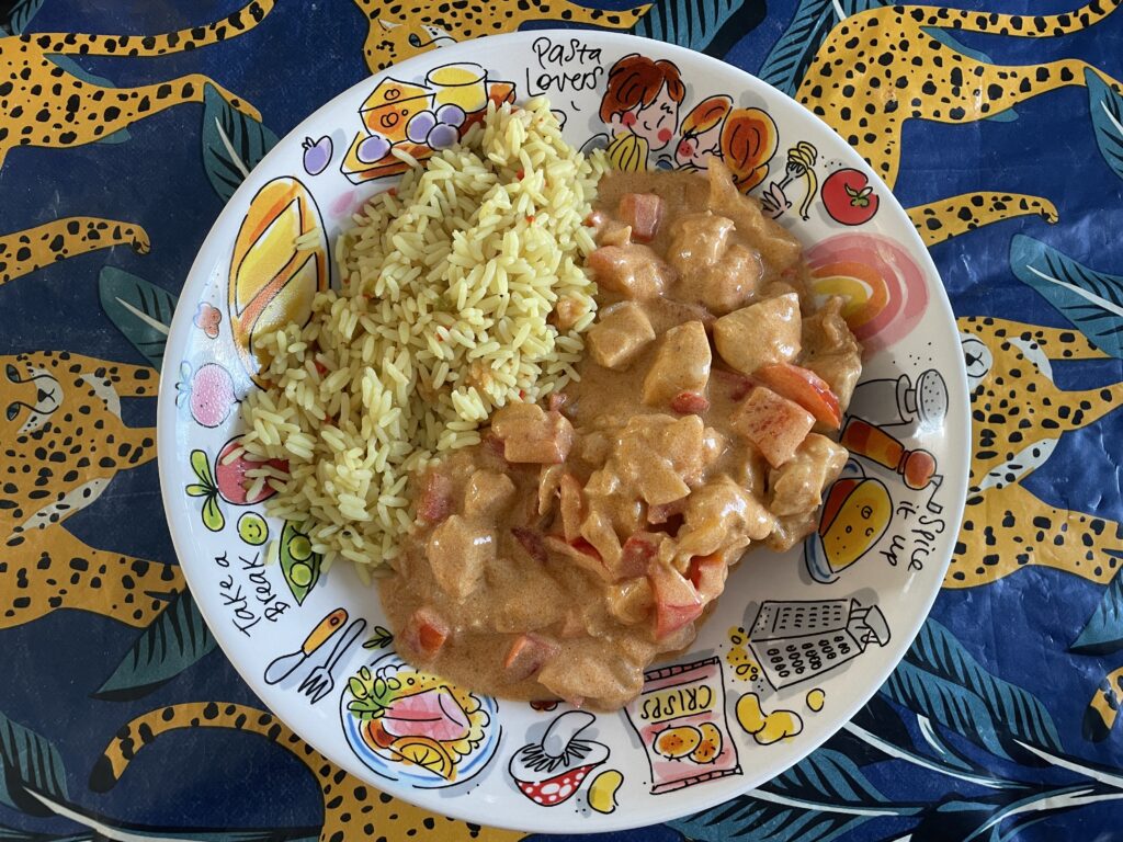 Voor het avondeten maak ik lekker kip tandoori. Waar mijn puber er heel goed van eet, eet mijn tuttebel net een schepje kip tandoori en twee schepjes rijst.