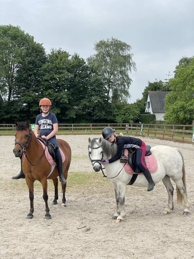 Sinds gistermiddag zijn we weer op de camping, waar het weer heerlijk is. De kinderen mogen vandaag allebei rijden. Mijn puber heeft de afgelopen tijd zo goed geholpen bij de manege dat hij een gratis les verdiend heeft en hij vindt het nog leuk ook. Doordat ze maar samen zijn, rijdt mijn tuttebel vandaag voorop en mag ze laten zien wat ze al kan. Het gaat haar al best goed af.