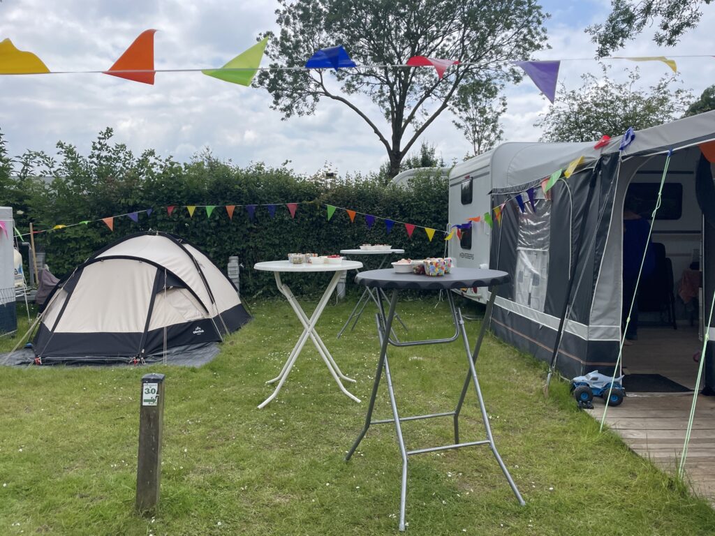 We hebben een campingborrel met ons laantje en de overbuurvrouw heeft gezellig alles versiert.
